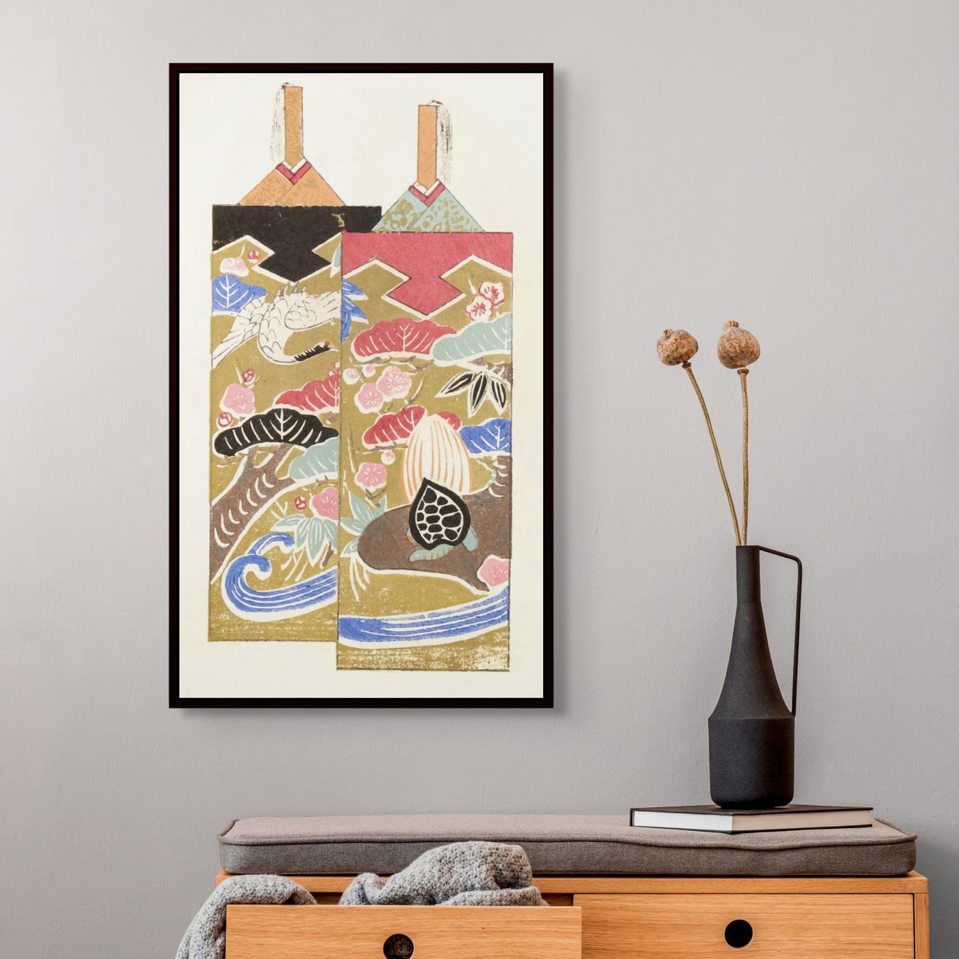 La toile révèle l'illustration dans toute sa profondeur — couleurs intenses, finition mate satinée. Un rendu élégant, sans effet plastifié. -