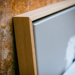 Là où beaucoup s'arrêtent à un cadre en carton pressé ou en MDF, nous avons choisi le bois massif. Parce qu'une œuvre qui dure mérite un support qui dure également. -